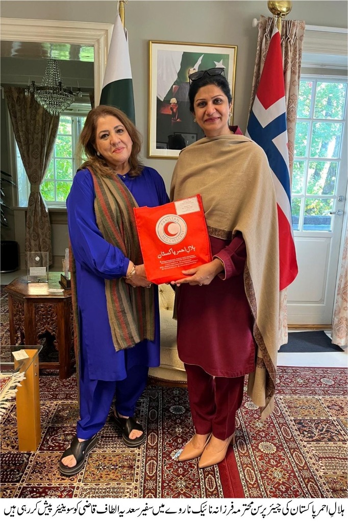 The Chairperson of the Pakistan Red Crescent Society, Mrs Farzhana Naek, held a meeting with Pakistan’s Ambassador to Norway, Mrs Sadia Altaf Qazi, in Oslo.